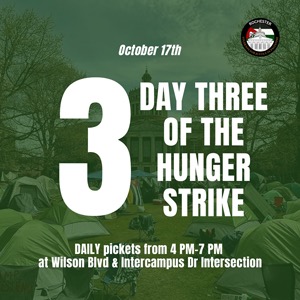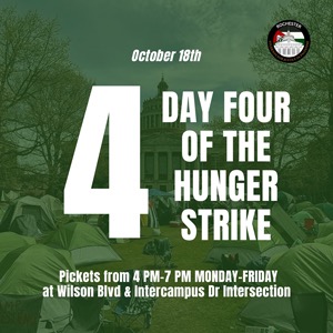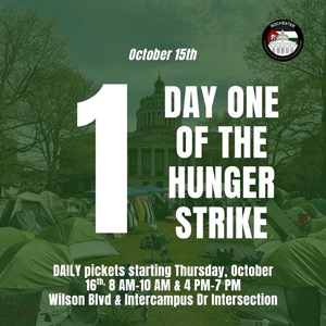 At the more SJP-friendly Rochester Beacon, former University of Rochester student Narm Nathan reported the next day that, "Members of Students for Justice in Palestine at the University of Rochester have launched a hunger strike, renewing their calls for the university to recognize the genocide in Gaza and sever its alleged ties to the Israeli war effort and settlement movement."