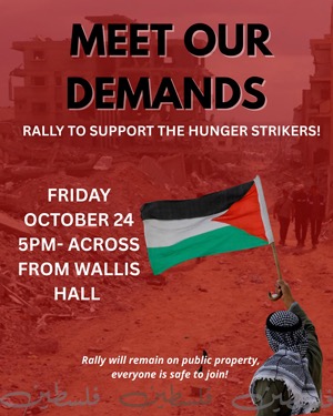 The next day, SJP UR announced that it was holding a Friday "rally" across from Wallis Hall. "MEET OUR DEMANDS," the message shouted.