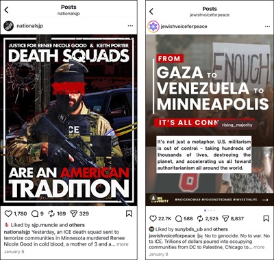 Both JVP and SJP found ways to tie the anti-ICE riots in Minneapolis into statements on Gaza.